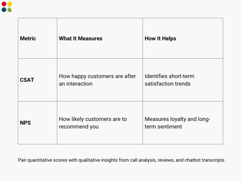 Progress should be monitored by utilizing CSAT (Customer Satisfaction Score) and NPS.