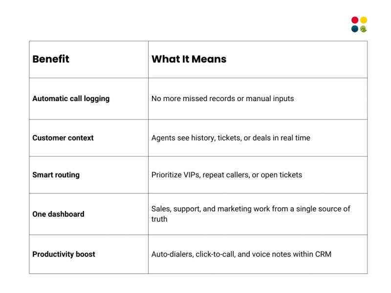 This is where cloud telephony and CRM intersect—a potent blend that converts calls to data-rich customer experiences. When well-integrated, it enables your agents to converse with full context, your managers to have access to real-time reports, and your business to grow without silos.