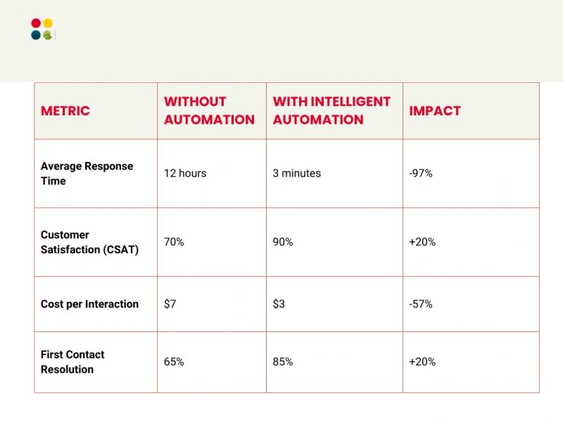 Intelligent automation is not about substituting humans but empowering them. It performs repetitive tasks, delivers real-time insights, and enables customer service teams to do what really matters: resolving complex issues and building memorable moments.