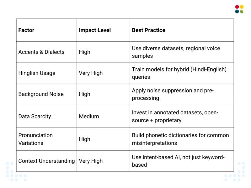 ● Accuracy is a function of data diversity, Hinglish compatibility, and contextual AI.
