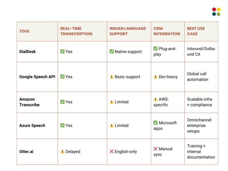 Comparison Table: Voice-to-Text Tools for Call Centers