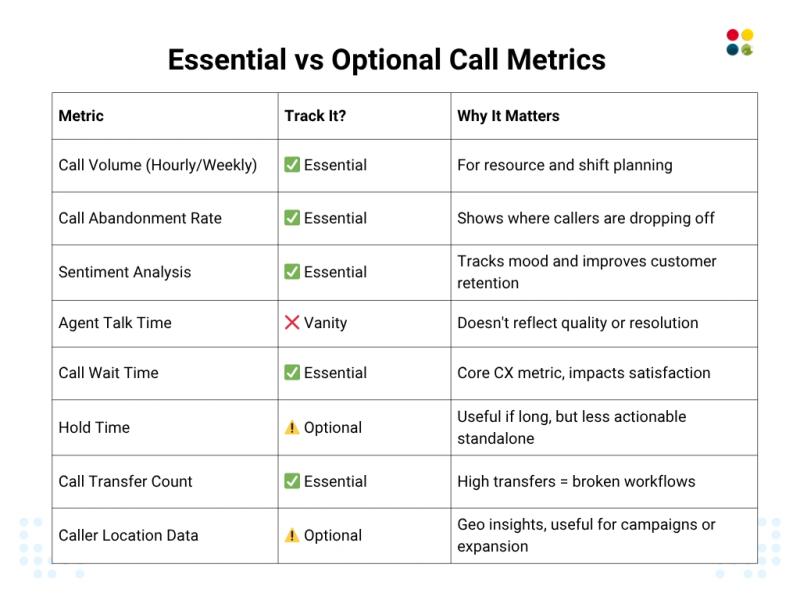 ● Prioritize metrics such as FCR, sentiment, and IVR drop-off over vanity numbers.