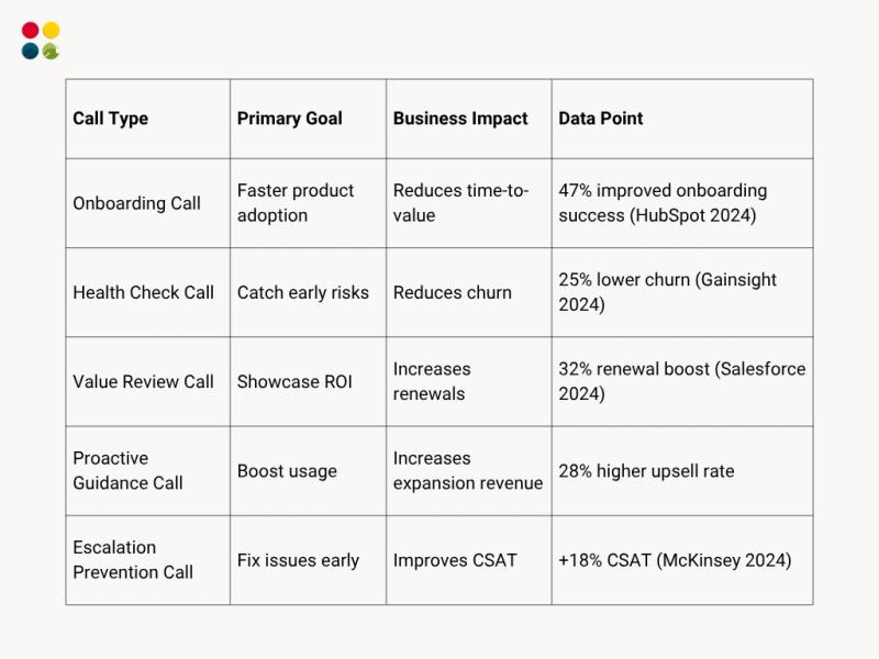 ● Companies with formal call-based success programs achieve 22–30% higher renewal rates.