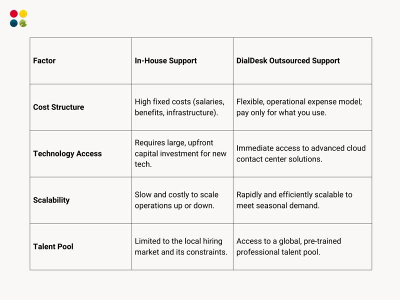 ● Financial Benefits: Outsourcing converts fixed capital expenses (salaries, benefits, infrastructure) into predictable operational expenses. This is a key reason businesses seek outsourced customer support services.