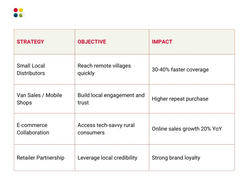 ● Direct-to-Village Approach: Companies employ local distributors and van sales models.