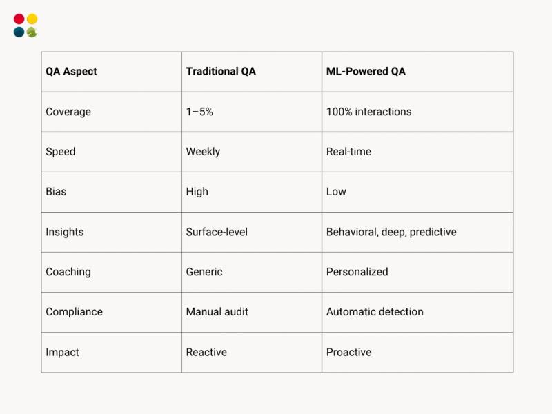 Stat: Companies using ML for QA achieve up to 98% reduction in missed errors (McKinsey Customer Ops Report, 2024).