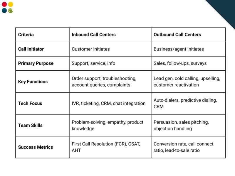 ● In this blog, we’ll explore the key differences between inbound and outbound call centers, when to use each, and how to choose the right model based on your business goals.