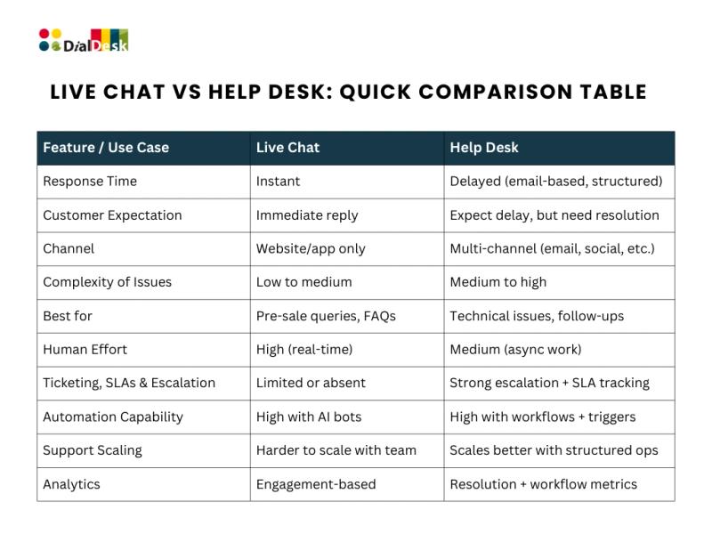 Live Chat vs Help Desk: Quick Comparison Table