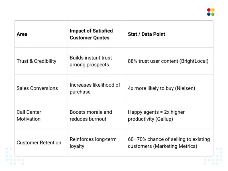 But satisfied customer quotes don’t just help businesses win new clients. They also fuel call center teams internally—providing encouragement, building morale, and serving as real-life reminders of why service excellence matters.