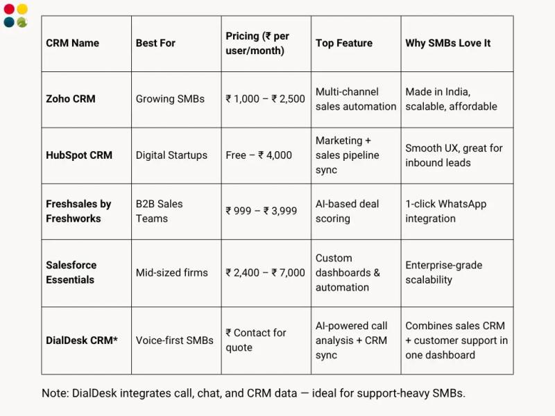 Below is an infographic-style comparison table of the leading sales CRM solutions suitable for Indian SMBs.