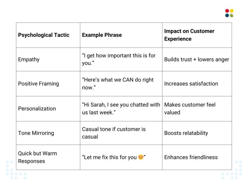 ● Psychology (tone, empathy, personalization) is just as important as technology.