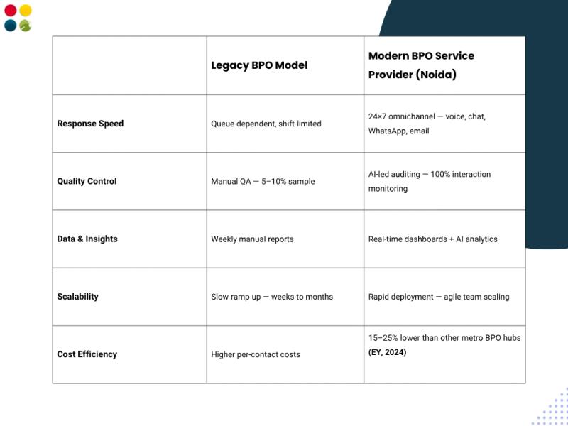 - BPO Services in Noida now cover the full CX spectrum: voice, chat, WhatsApp, back-office, AI auditing, and analytics.