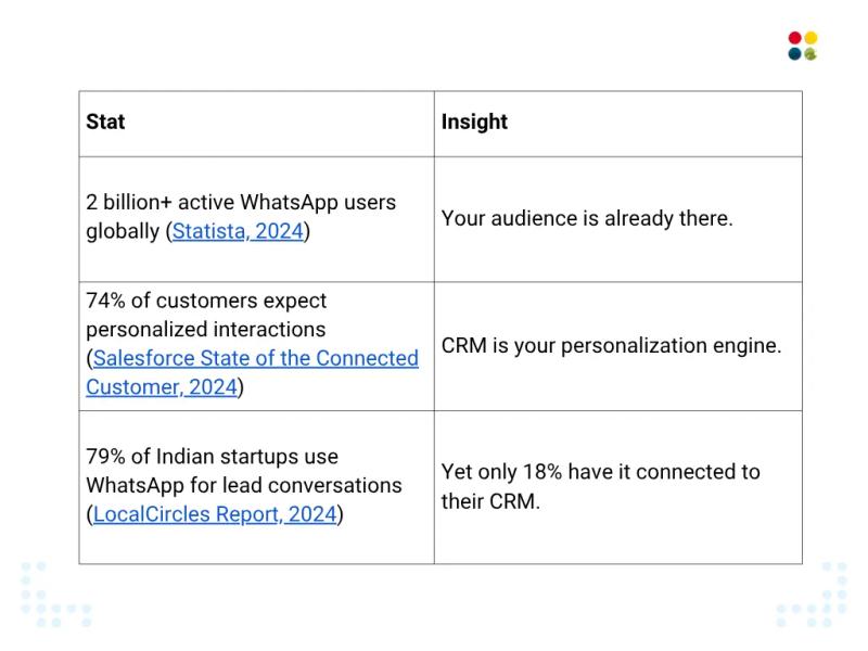 ● This blog explores how startups and small businesses can grow faster by integrating WhatsApp with their CRM.