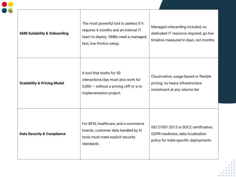 β’ Evaluate tools on 7 criteria: automation accuracy, channel coverage, CRM integration, QA coverage rate, SMB suitability, scalability, and data security certification.