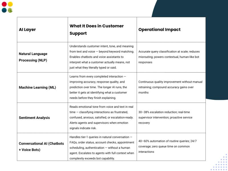 - AI Customer Support works as a multi-layered system, combining technologies like NLP, machine learning, sentiment analysis, and real-time assistance to create a support engine that keeps learning and improving with every interaction.